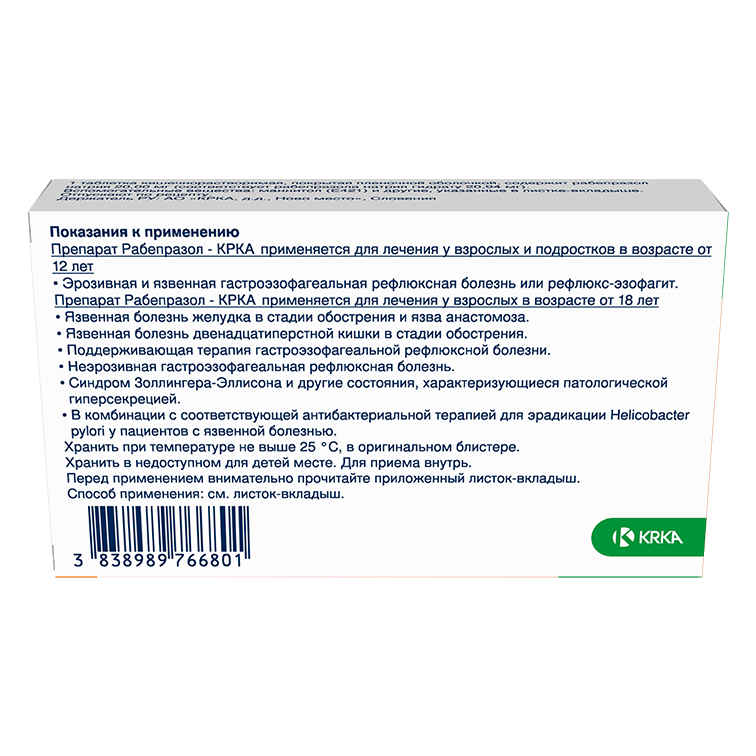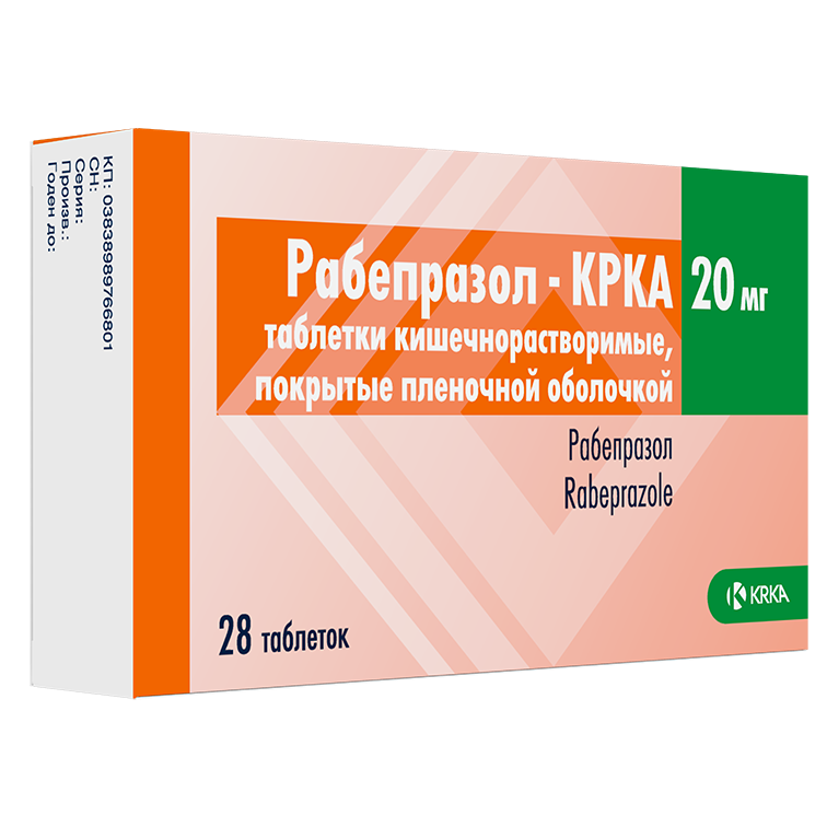 РАБЕПРАЗОЛ-КРКА 20мг N28 табл кишечн-раств п.п.о. КРКА, Д. Д., НОВО МЕСТО