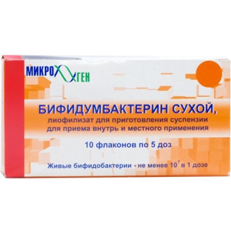 БИФИДУМБАКТЕРИН 1*10^7 КОЕ x 5доза N10 лиоф д/пригот сусп д/приема внутрь и местн прим АО МИКРОГЕН