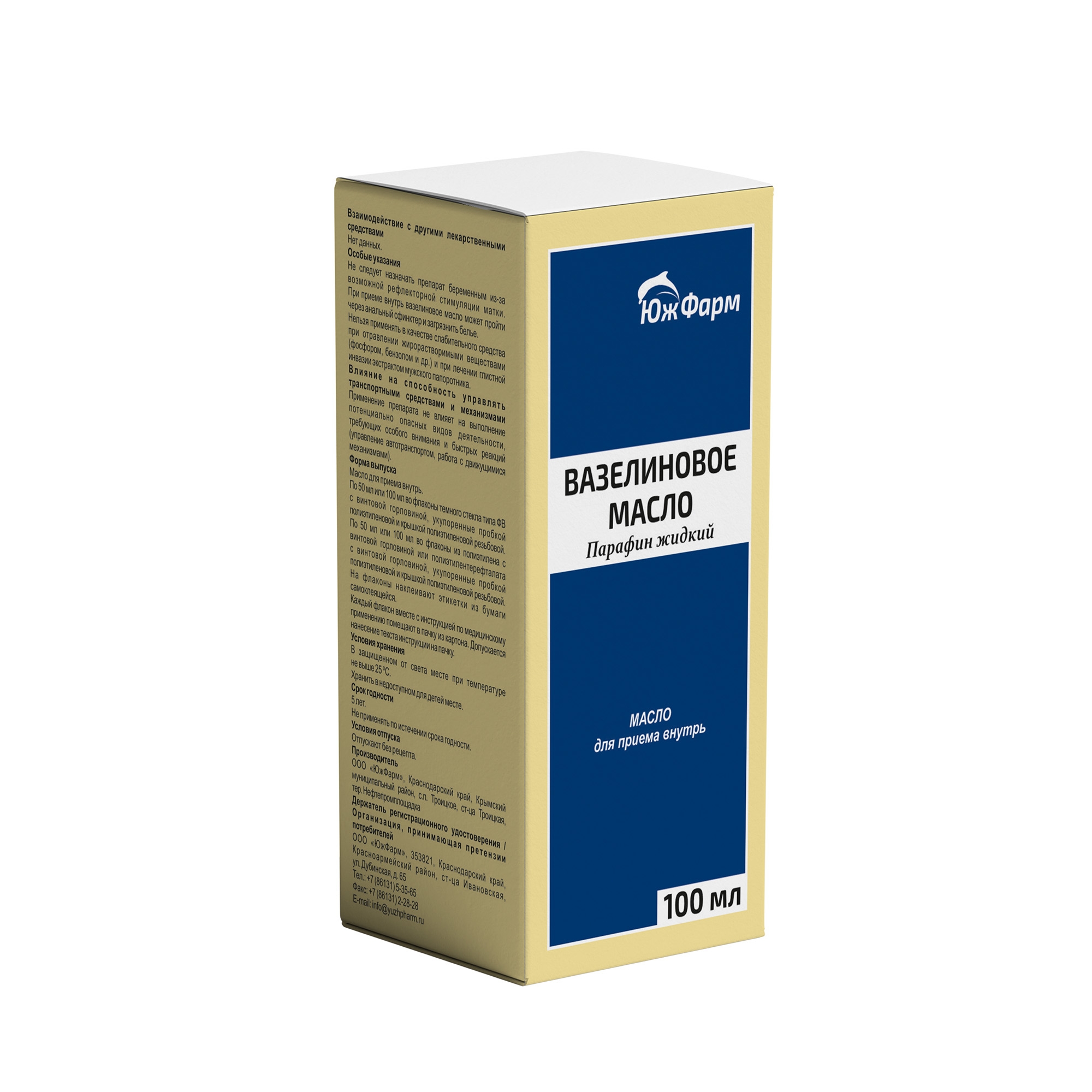 ВАЗЕЛИНОВОЕ МАСЛО 100мл N1 масло д/приема внутрь ЮЖФАРМ