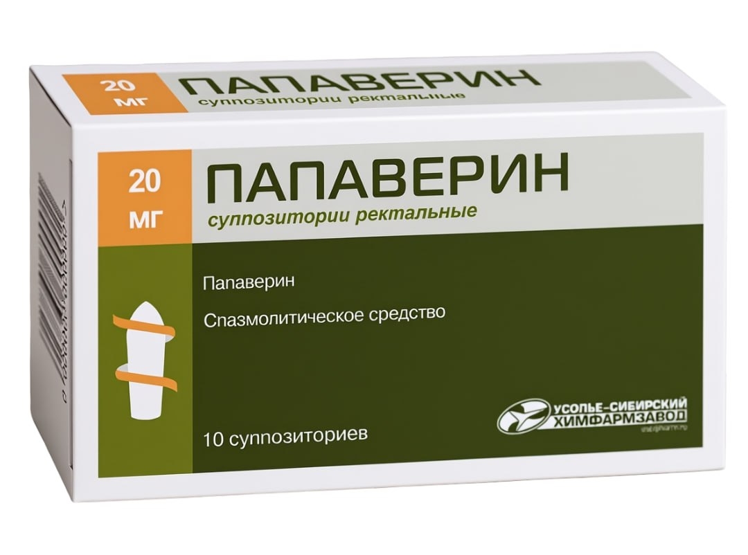 ПАПАВЕРИН 20мг N10 супп рект УСОЛЬЕ-СИБИРСКИЙ ХИМФАРМ ЗАВОД