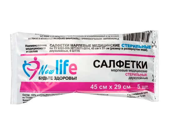 Лайф Салфетки марлевые стер двухслойн 45х29см №5