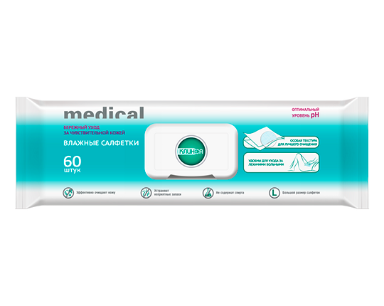 Клинса салфетки влажные д/ухода за лежач больными №60